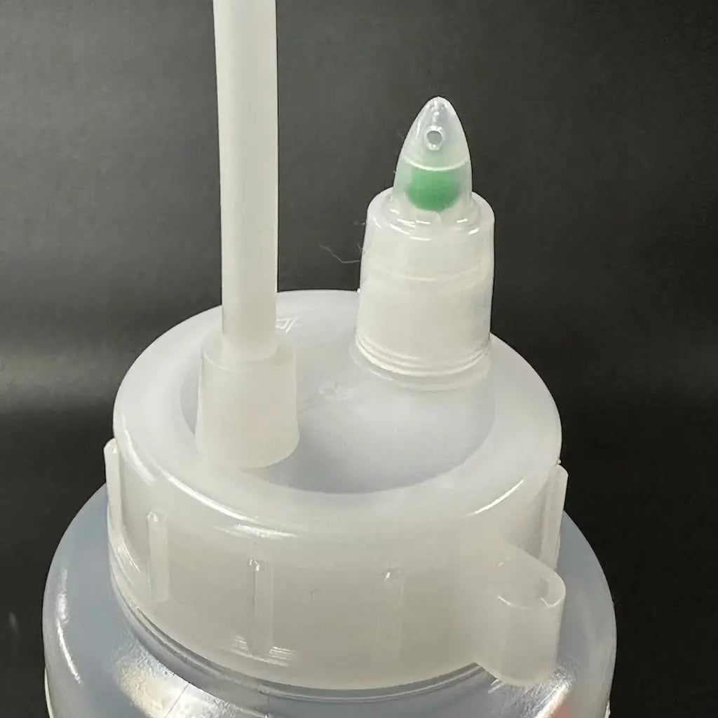 新開発のオートガスベント(液だれ防止弁)のはたらきにより、自動的にガスが抜けます。エタノールなどの揮発性の高い液体でも先端ノズルから液だれすることなく、安心して保管・使用できます。