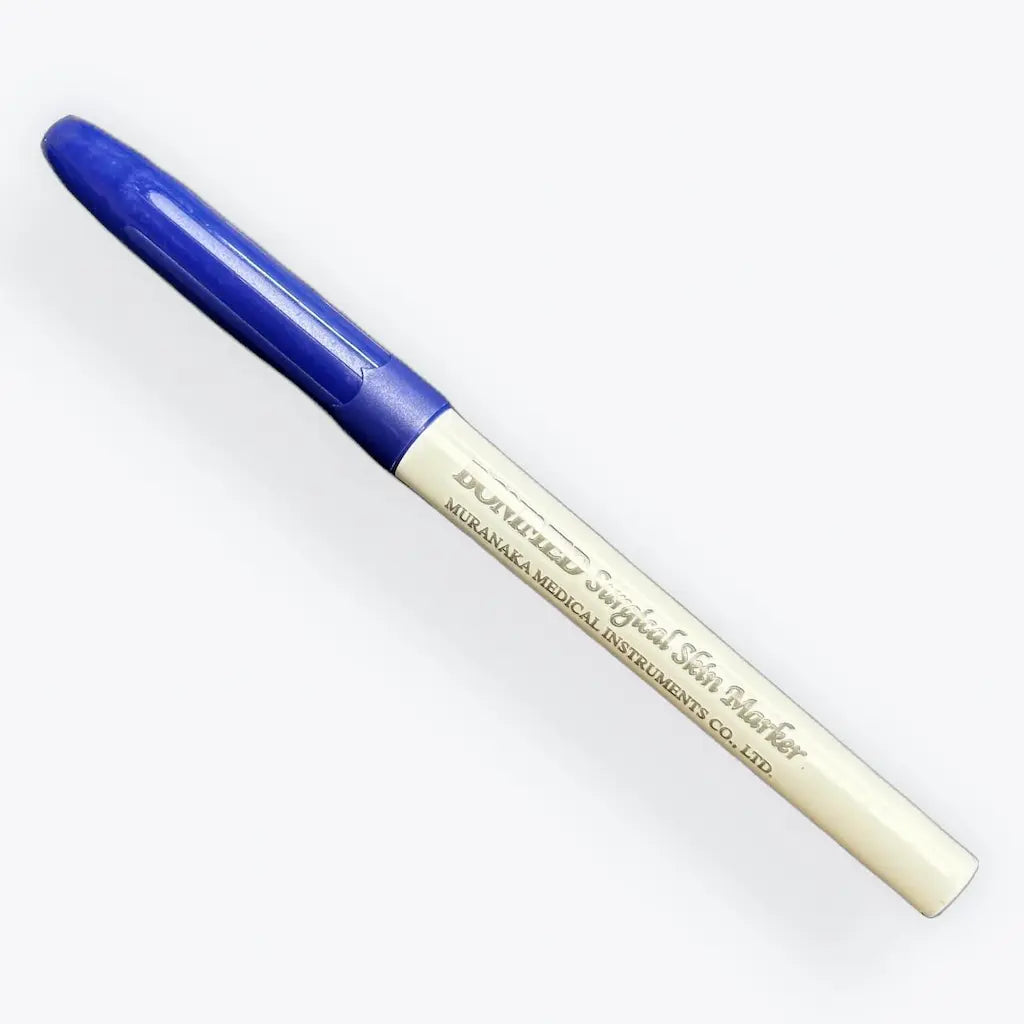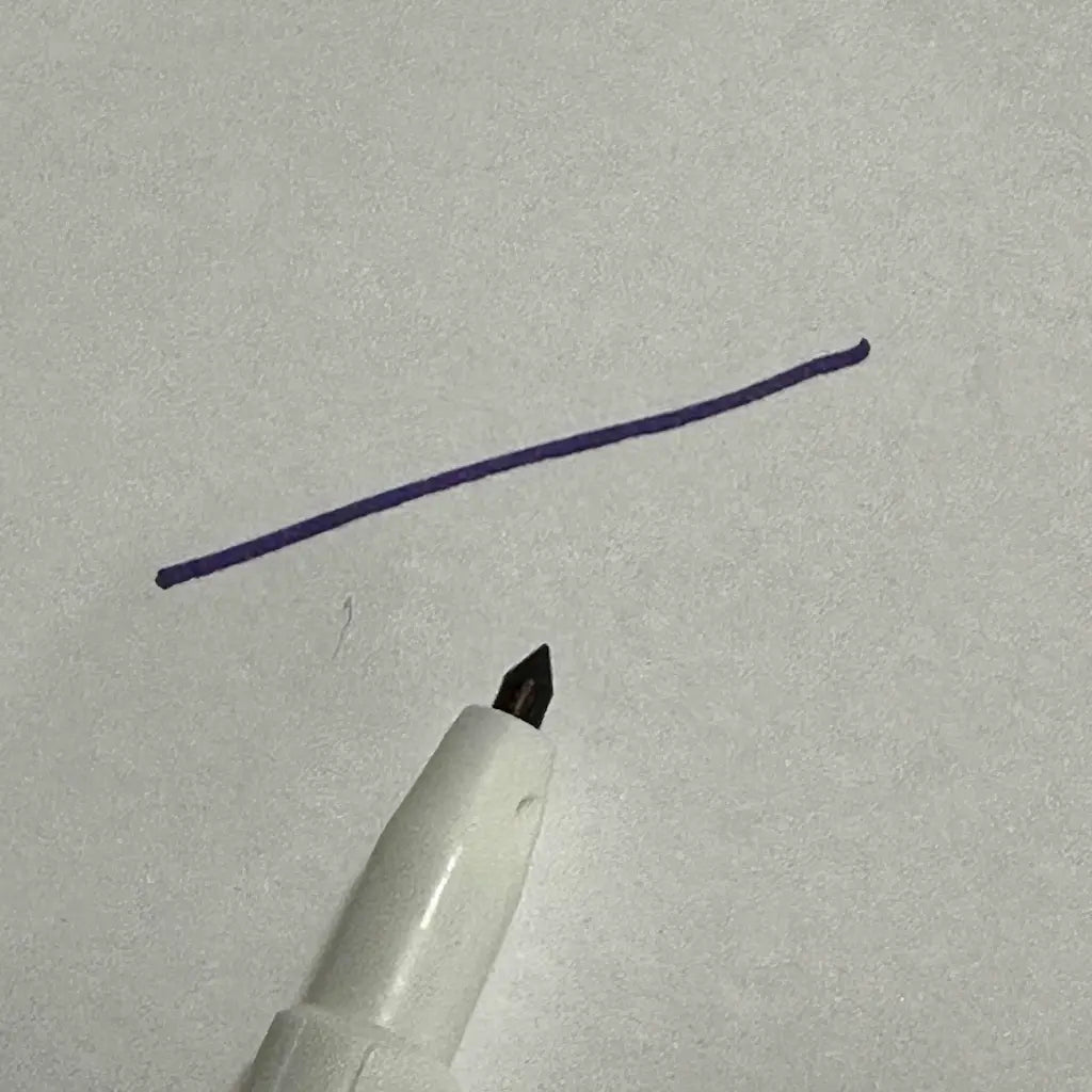 ペン先の当て方を変えることで、1本で2種類のラインを引きわけることができるスキンマーカーです。肌に対してペンを垂直に描くと細いライン、少し寝かせると太いラインが描けます。