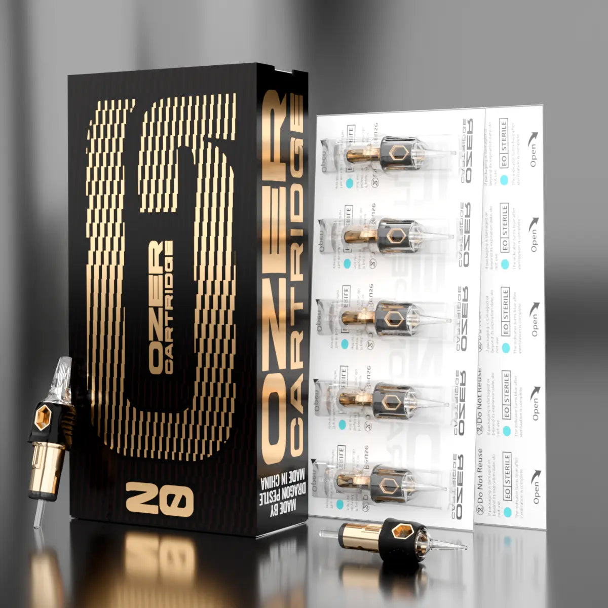 ゴム製のフィンガーレッジが付いている「オザー・ジー・タトゥーカートリッジ(OZER G TATTOO CARTRIDGES)」のラウンドシェーダーです。