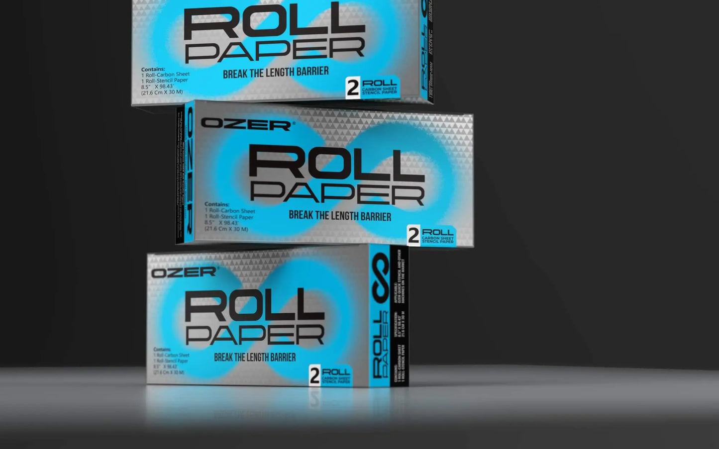 従来のカーボン紙やステンシル・ペーパーは規定の用紙サイズが中心でした。新発売の「オザー・ロール・ペーパー(Ozer Roll Paper)」は、特許取得済みのロール設計により、どんなに長い下絵でも無限にプリントできます。