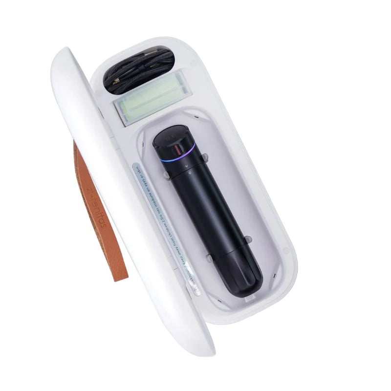 まず最初に注目すべきポイントは、基本パッケージに〝UVC(紫外線)除菌ボックスケース〟が付属されていることです。マシンの衛生管理は非常に重要です。使用時にはバリアーし、使用後には二酸化塩素などで汚れをきれいに拭き取り、さらにUVCボックスに入れてクリーニングすると感染の可能性を徹底的に遮断できます。タトゥーマシン用に特別設計された世界初のポータブルUVCボックスは、あらゆるモデルのワイヤレスマシンに適しているため、世界中のタトゥーイストが、いつでもどこでも安全なタトゥーイングを顧客に提供できます。見た目にもスタイリッシュなこのスケースは、まさに革命的です。