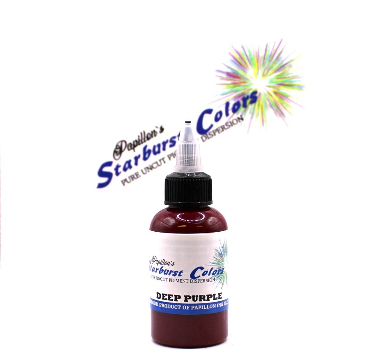 パピヨンのタトゥーインクには4つのブランドがありますが、なかでも1995年から製造・販売しているのがスターバーストです。旧名はスターブライト(Starbright)でしたが、2023年9月よりブランド名とラベルのデザインを変更しました。往年の定番としてパピヨンのインクをご愛用されている方は、ご承知おきください。